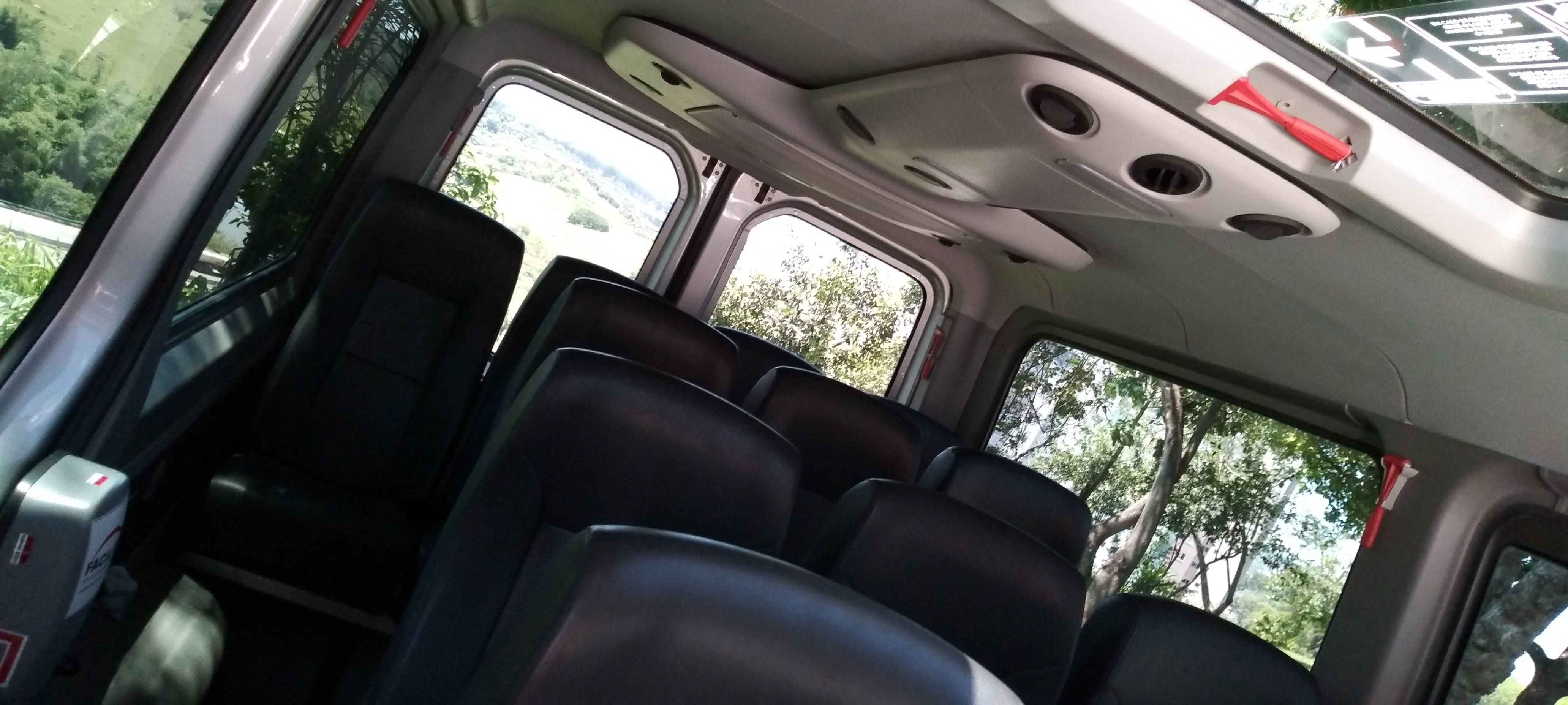 Capacidade para 14 ou 15 passageiros, porta automática, teto panorâmico, entrada USB para cabo de carregador de celular, climatização digital e poltronas individuais premium para o máximo conforto.